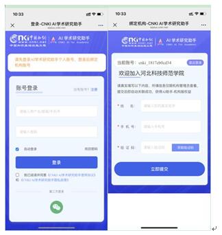 已有知网账号可直接微信扫描上方二维码,如无知网账号需先注册,登录成功后填写姓名、手机号相关字段,获取验证码后点击“立即提交”。