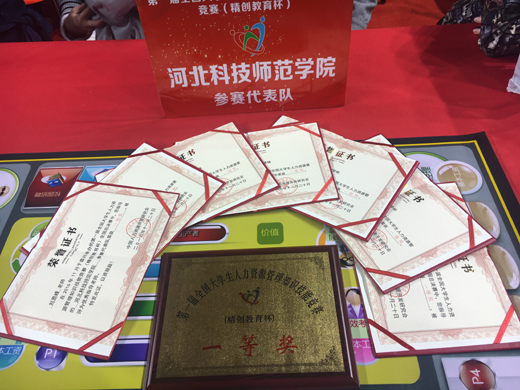 本次赛事由中国人力资源开发研究会主办,历时6个多月,全国312所高校代表队参加了初赛,92所高校代表队挺进总决赛。为参加本次比赛,工商管理学院精心组织、悉心指导,学生全员参与,经过层层选拔,最终由苗俊峰、邢晓倩、刘少博、郭瑶、国学杨五位同学组成的“秦皇科师队”脱颖而出,凭借扎实的理论功底和过硬的专业技能,以河北赛区特等奖的优异成绩挺进决赛并荣获一等奖。(编辑:孙艳敏     审核:唐代清)