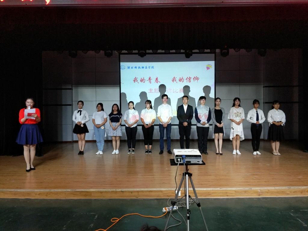 2017年5月24日晚,纪念中国共青团成立95周年“我的青春,我的信仰”主题演讲比赛总决赛在秦皇岛校区多功能厅举行。经全校各院(系、部)层层选拔,在各层次初赛、复赛中脱颖而出的12位优秀选手参加了决赛。