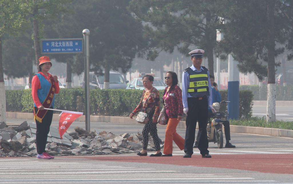 校党委宣传部志愿者在河北大街和文昌路口上岗执勤(三)