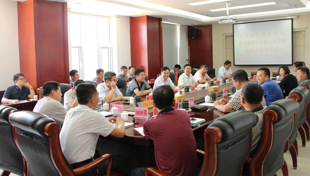 2017年6月20日,半岛online(中国)与青龙满族自治县政府举行战略合作洽谈会。校领导靳占忠、王同坤、李佩国和青龙县领导霍春利、纪立功、马文波出席了洽谈会。
