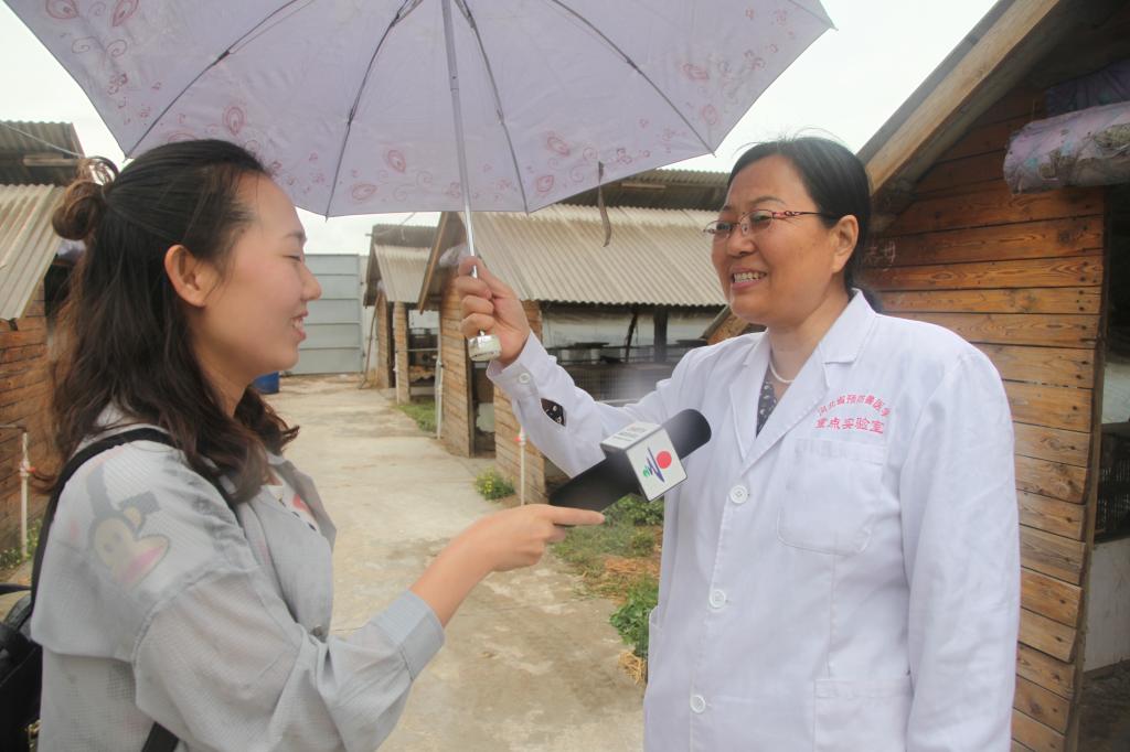 在采访现场,正值天气起风转阴,又突然下起了中雨,大家手足无措时,史秋梅教授很娴熟地从随身携带的包内取出雨伞继续对养殖户进行狐貉貂疾病防控技术指导。“只要能为养殖户农民尽早解决好动物突发疾病的困扰,并让农民朋友们真正掌握动物养殖疾病防控技术,从而促进农业产业健康发展,是我们科技工作者最大的心愿与应尽的责任。再苦再累心里都非常高兴。”当记者看到这样的风雨天气示意史秋梅教授歇一下时,她这样说,“我们每次下乡到养殖户或养殖企业进行技术指导,时常会遇到这样的风雨天气,现在都很习惯了。”史秋梅教授时而向养殖户农民讲解着养殖动物疾病防治技术知识,时而认真观察着动物的体表特征与健康状况,时而又面对记者的镜头介绍着科技支农的苦与乐。