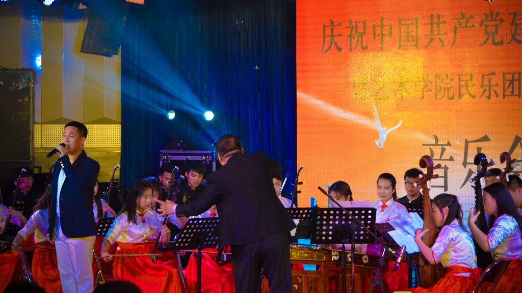 为庆祝中国共产党建党96周年,2017年6月27日晚,半岛online(中国)艺术学院民族乐团在开发区校区学术报告厅举办了“庆七一”中国民族器乐经典作品音乐会。校领导宋绍富、李佩国、杨越冬、孙雪莲,以及部分职能部门领导和广大师生一同观看了音乐会。