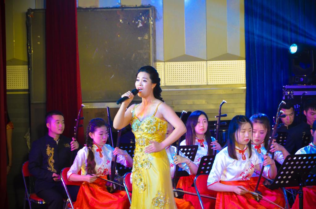 校领导宋绍富、李佩国、杨越冬、孙雪莲与艺术学院民族乐团师生合影