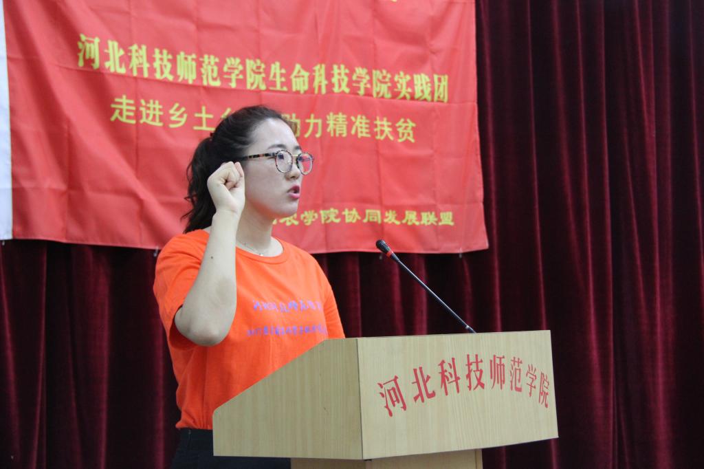 实践团队学生代表在会上发言,表达了做好实践、精准扶贫、服务三农的愿望。