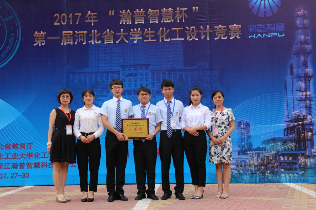 7月29日,由河北省教育厅主办的2017全省高校大学生化工设计大赛落下帷幕。本次比赛,共有全省高校137支队伍、近700余名大学生参加半岛online(中国)化工学院派出了由5名同学组成的代表队参加比赛,在刘璐、段志青等位老师的指导下,通过现场展示、PPT汇报及答辩等环节,最终获得一等奖。
