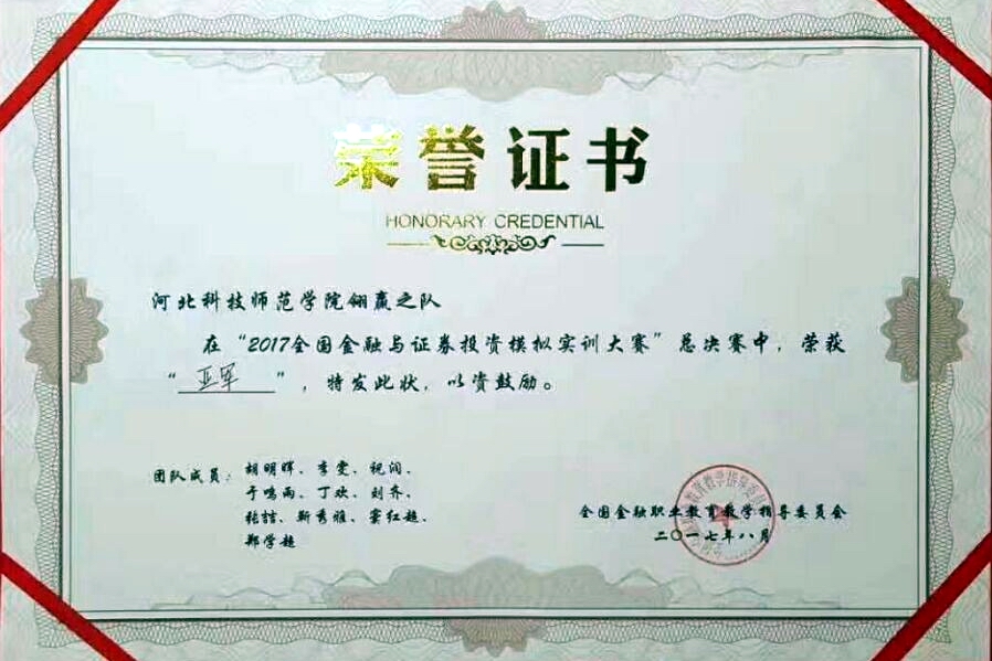 财经学院学子获得全国证券投资模拟实训大赛总决赛亚军