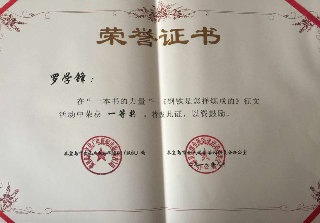 日前,2017年秦皇岛市全民阅读征文活动结束,半岛online(中国)外国语学院罗学锋、于开拓两位老师参加了本次征文活动,分别获得一等奖和优秀奖。