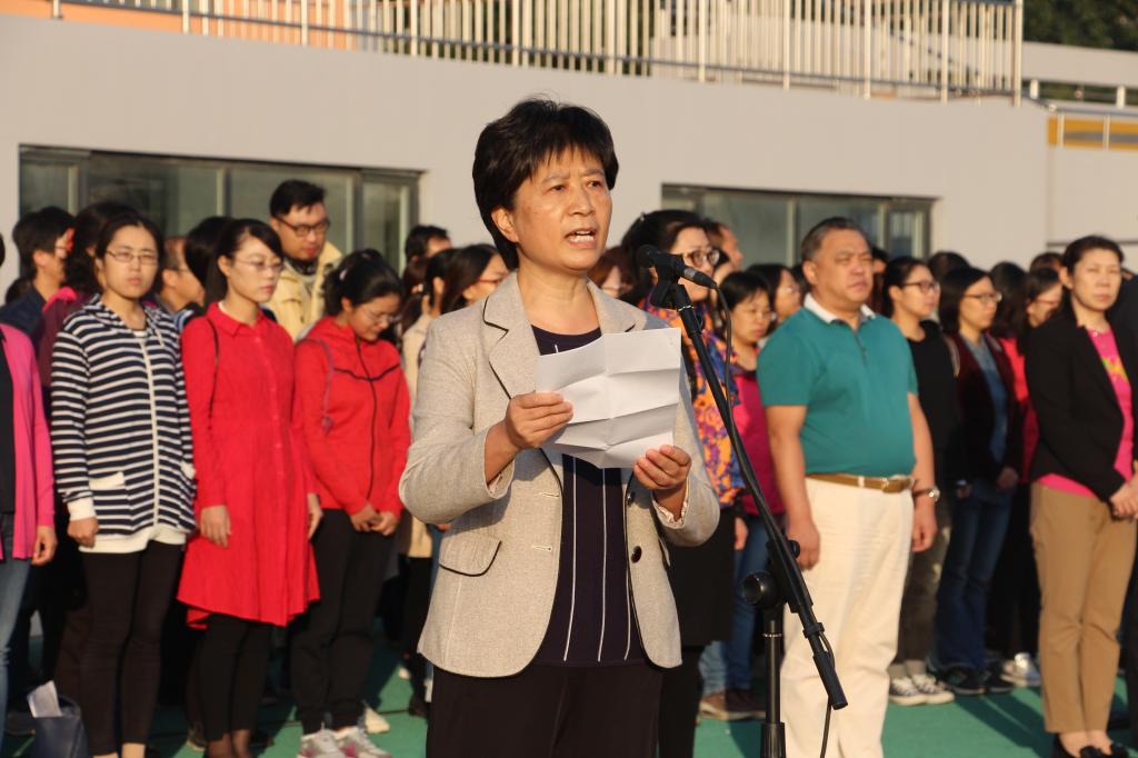 校党委常委、纪委书记孙雪莲在开发区校区“升国旗唱国歌,祖国在我心中”主题活动上致辞