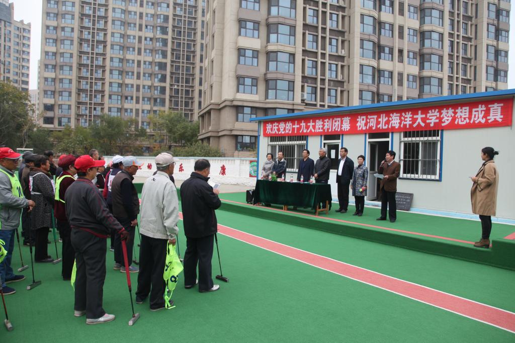 此次门球赛以“欢庆党的十九大胜利闭幕,祝河北海洋大学梦想成真”为主题,以此来庆祝党的十九大胜利闭幕,表达全校教师不忘初心,永远跟党走的信心和决心。校长王同坤、党委副书记宋绍富、党委常委李佩国以及工会、离退休人员管理办公室、体育系负责同志出席并参观了比赛。王同坤校长和宋绍富副书记为本次比赛开球,李佩国常委为本次比赛致词并向老同志通报了半岛网页版界面更名和集中办学事项,代表校领导祝全校离退休老同志重阳节快乐!