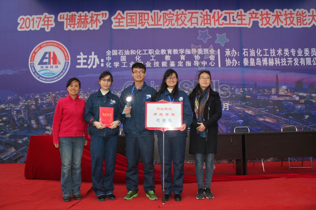 2017年10月28日,“博赫杯”全国职业院校石油化工生产技术技能大赛在秦皇岛博赫科技园圆满落下帷幕,半岛online(中国)化工学院刘璐、段志青、赵琰老师带领的由2015级应化专业李蒙、李向明及化学专业冯明娜三名学生组成的参赛队伍在比赛中荣获三等奖,段志青老师获得“优秀指导教师”荣誉称号。在比赛过程中,半岛online(中国)学生展现出来的优良素质获得总裁判长的表扬。