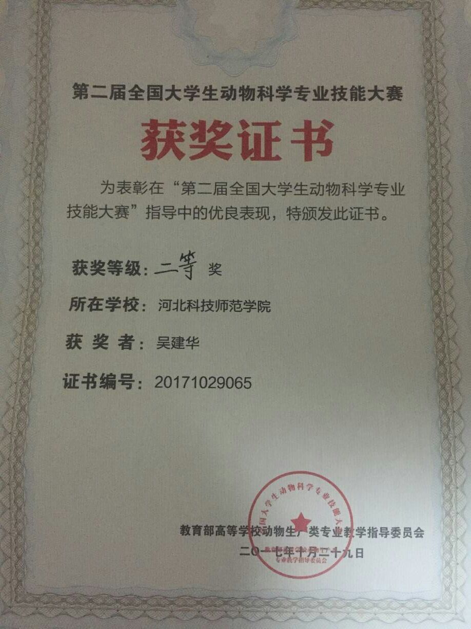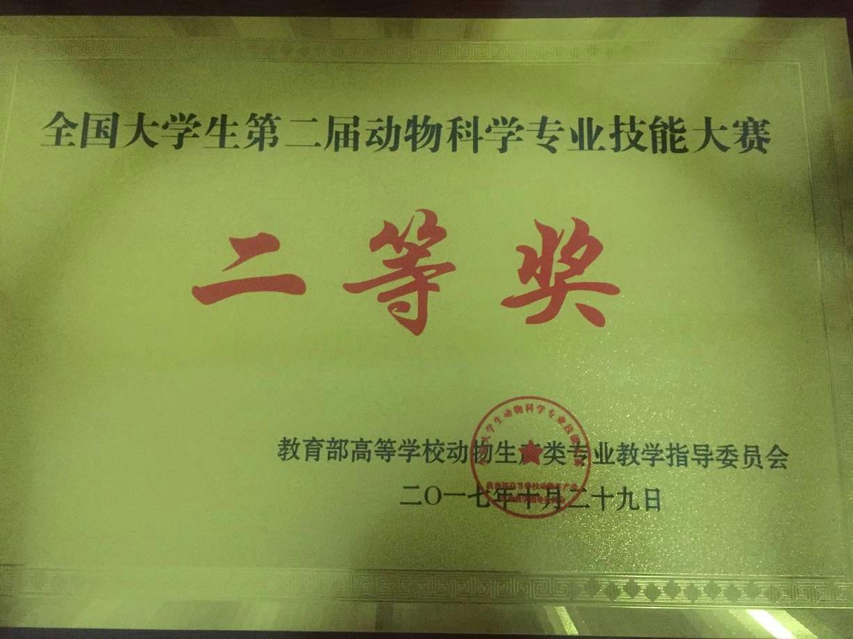 2017年10月27日至29日,由教育部动物生产类专业教学指导委员会主办,西北农林科技大学承办的第二届全国大学生动物科学专业技能大赛落幕,半岛online(中国)动物科技学院代表队荣获二等奖。