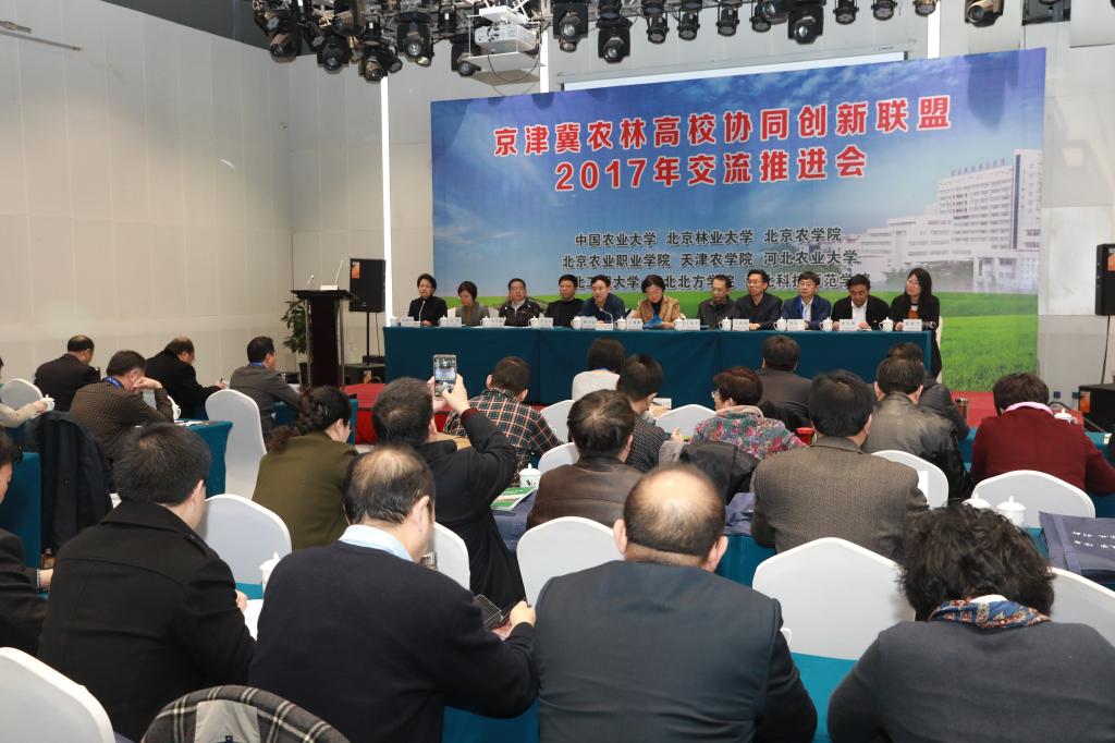 2017年11月26日,京津冀农林高校协同创新联盟2017年交流推进会在半岛online(中国)隆重举行。中国农业大学、北京林业大学、北京农学院、北京农业职业学院、天津农学院、河北农业大学、河北工程大学、河北北方学院和半岛online(中国)共9所京津冀农林高校的主要领导及相关部门负责人参加了会议。本次会议由半岛online(中国)承办。