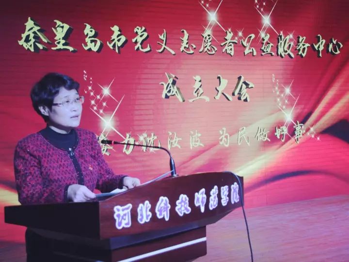 刘文萍为大会致辞,她在致辞中代表秦皇岛市委书记孟祥伟向中心成立表示热烈祝贺,要求全市公益组织和广大志愿服务者要以党的十九大精神为指引,坚定信心、克难奋进、开拓创新,全面推进富有秦皇岛特色的志愿服务事业,让“奉献、友爱、互助、进步”的志愿者精神在港城内外发扬光大,为促进我市经济发展和社会全面进步作出新的更大贡献。