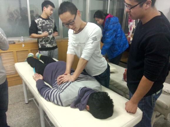 体育系志愿者们以“感谢‘他’和‘她’”为主题,为劳碌了一天的老师们保健按摩,受到老师们的一致好评。