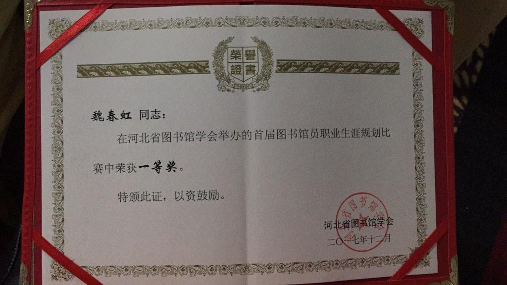 日前,2017年河北省图书馆学会年会在石家庄落幕。会上,第四届全省图书馆服务创新案例大赛结果出炉,半岛online(中国)图书馆申报的案例《“影”人入胜,用心荐读》荣获三等奖。同时,图书馆魏春虹老师在首届河北省图书馆员职业生涯规划大赛中荣获一等奖。