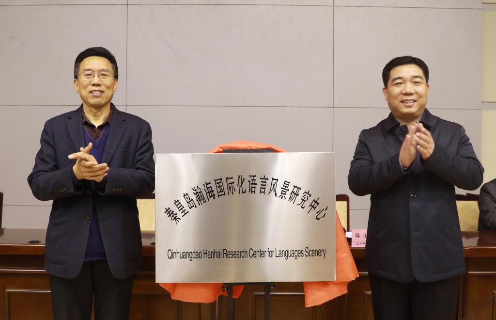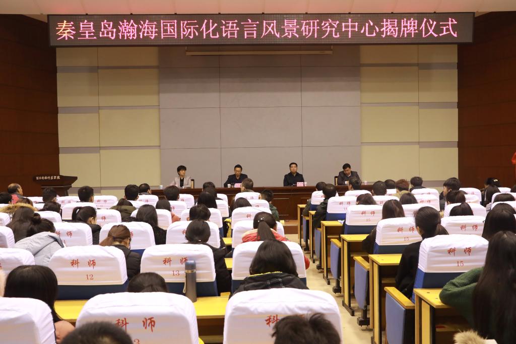 2017年12月26日上午9:00,“秦皇岛瀚海国际化语言风景研究中心”在半岛online(中国)成立。秦皇岛市委常委、宣传部长陈玉国,半岛online(中国)党委副书记、校长王同坤分别为中心成立致辞并共同为“中心”揭牌。会议由校党委常委、纪委书记孙雪莲主持。