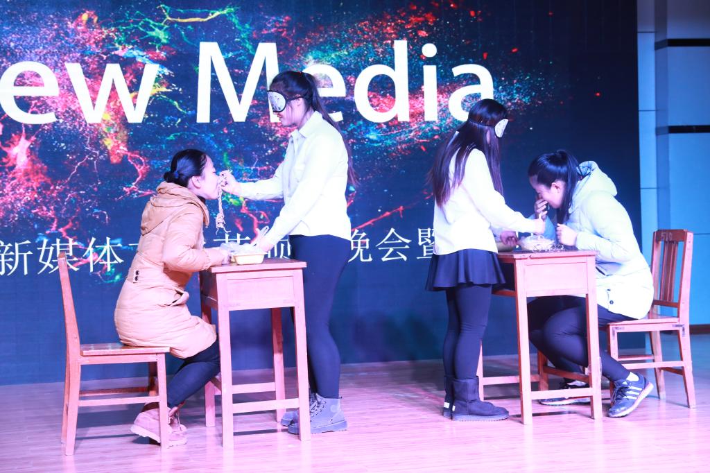 秦皇岛校区举办的第一届新媒体文化节暨元旦晚会节目丰富多彩,精彩纷呈,有社团的舞蹈歌曲,有新媒体成员的小品表演,还有紧张刺激的游戏。pk式的活动安排使得整场活动气氛热烈而欢快。