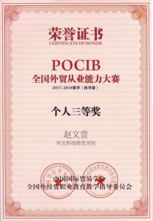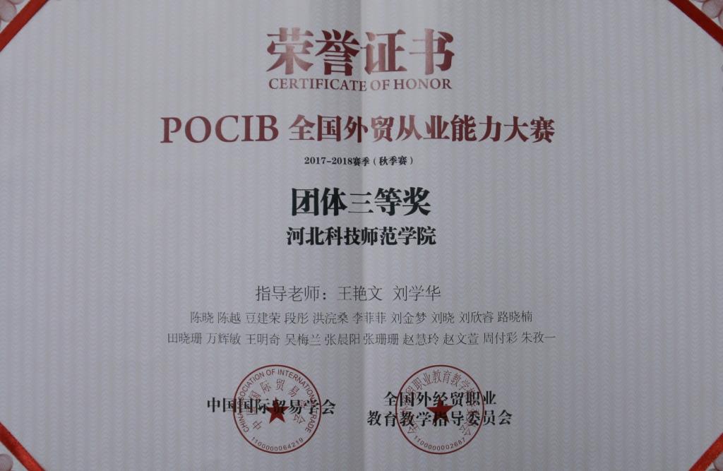 2017年11月28日,由中国国际贸易学会、全国外经贸职业教育教学指导委员会共同主办的“第七届POCIB全国外贸从业能力大赛(秋季赛)”圆满落幕。经过20天的不懈拼搏,半岛online(中国)参赛团队获得本科组团体三等奖。
