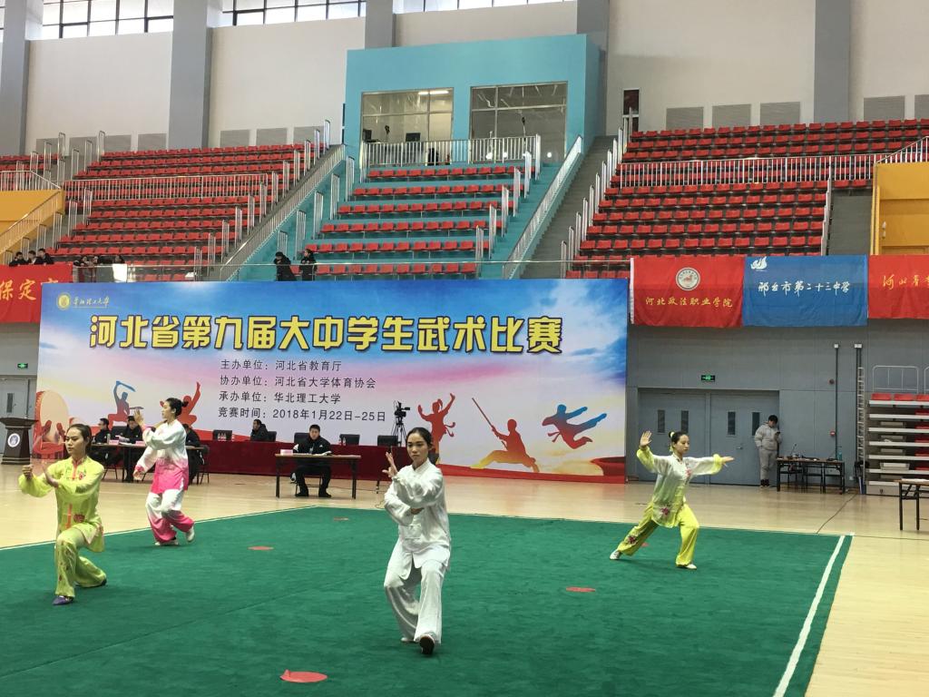 2018年1月22日至25日,河北省第八届大中学生武术比赛在华北理工大学举行,来自全省34所普通高校和 5所中学的 39支代表队共490名运动员参加了本次比赛。