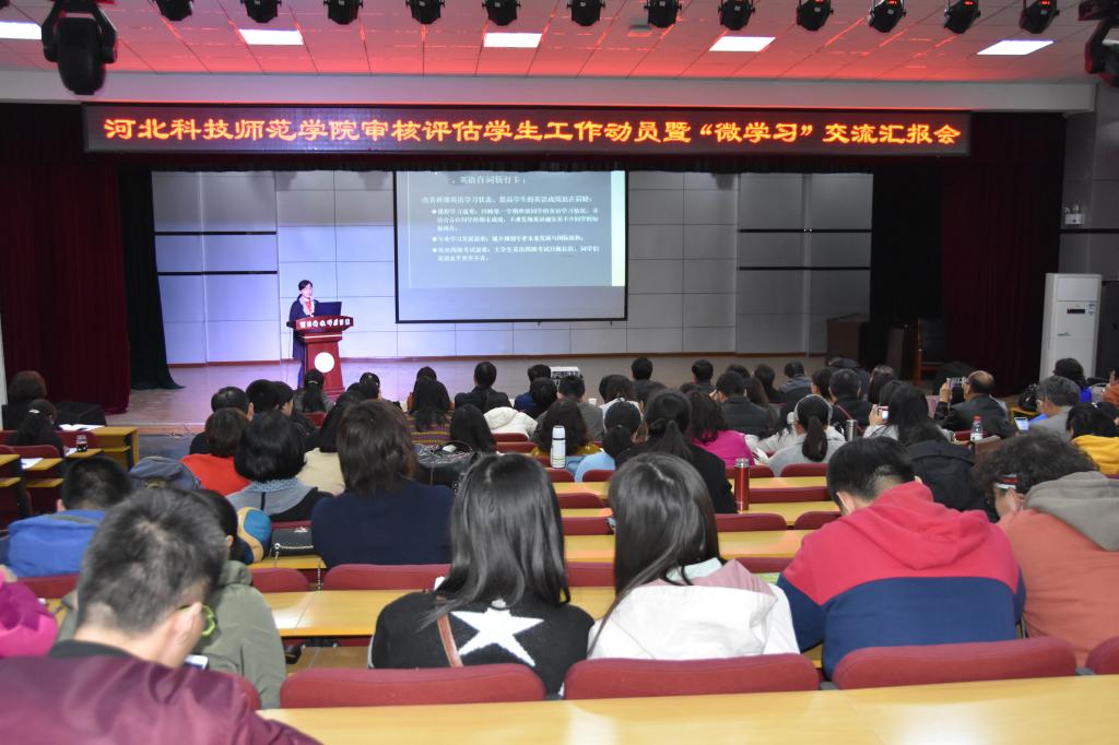 2018年4月13日,半岛online(中国)审核评估学生工作动员暨“微学习”交流汇报会在秦皇岛校区召开。副校长张福喜出席活动并讲话。教务处、学生处、安全工作处、校团委等部门主要负责人、各院系学生工作主管领导、全体辅导员(班主任)、学生处与团委全体工作人员及学生代表等近300人参加了活动。活动由校团委负责人主持。