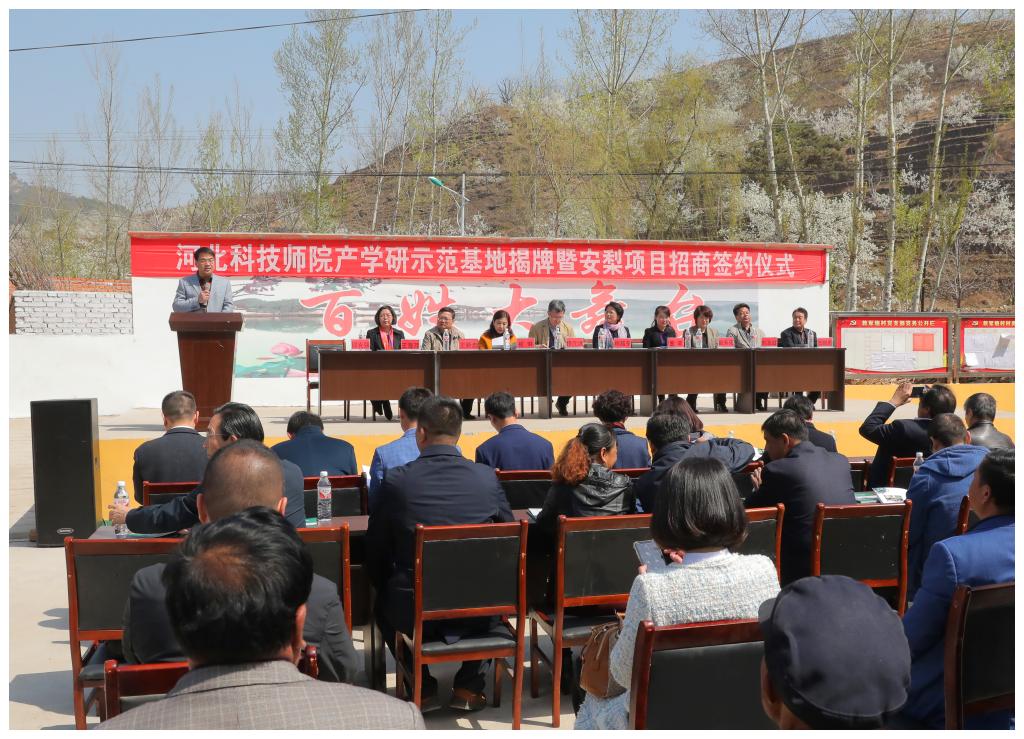 2018年4月17日,“半岛网页版界面产学研合作示范基地揭牌暨安梨项目招商签约仪式”在青龙满族自治县凉水河乡救军炮村安梨基地举行。半岛online(中国)副校长杨越冬、秦皇岛市林业局副局长穆元洪,青龙满族自治县人民政府副县长董菲、卢龙县副县长崔琳等领导,河北燕禾泉食品股份有限公司、唐山市施尔得肉制品有限公司、中国管理科学院创新所健康养生研究中心、中绿金桥(北京)投资管理有限公司,青龙县有关单位、驻救军炮村工作队以及半岛online(中国)科研处、新农村研究发展中心、园艺、城建、工商、财经等有关领导专家出席了会议。