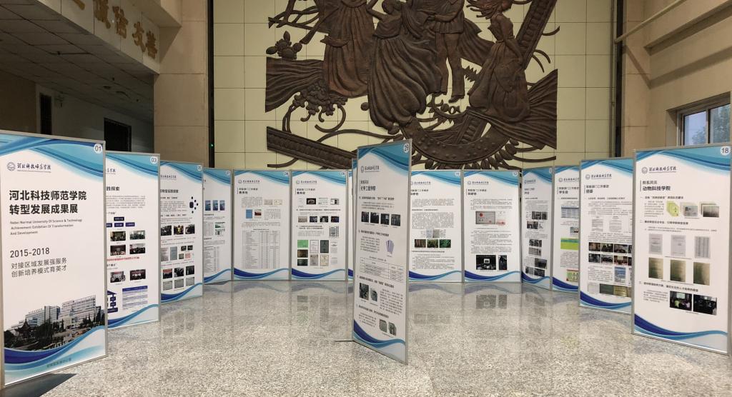经过前期策划、材料征集、修改统稿、艺术设计及展板制作,由校转型发展办公室牵头组织的“对接区域发展强服务 创新培养模式育英才” 2015-2018半岛网页版界面转型发展成果展,于5月28日在秦皇岛校区逸夫楼一楼大厅开展。