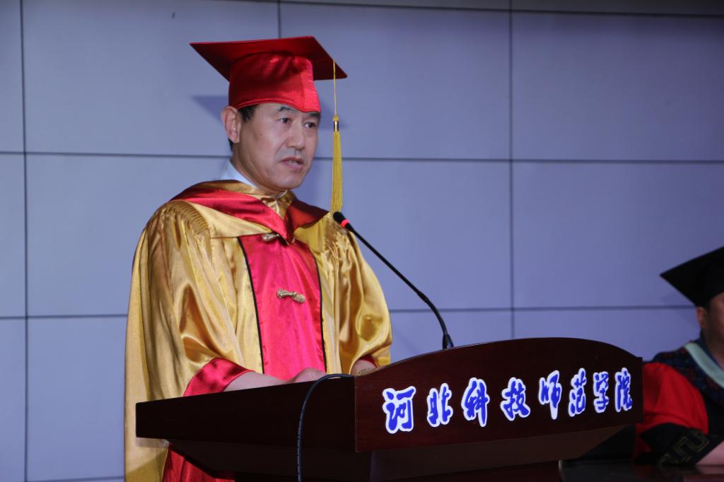 典礼在庄严的《国歌》声中拉开序幕,靳占忠作了精彩致辞。他回顾了半岛网页版界面三年来在研究生教育、转型发展试点工作、筹建“河北海洋大学”、集中办学取得的成绩和进展,同时送给即将踏上崭新征程的硕士生们四点希望:敏而好学,树立终身学习的理念;修身养性,不断提高自身的道德水平;爱岗敬业,积极投身民族复兴的事业;锐意创新,争做时代发展的“弄潮儿”。衷心祝愿毕业研究生们在广阔的新天地里,做出新的业绩,为祖国增光,为母校添彩!无论毕业生们身在何方,母校都永远惦记大家,支持大家,祝福大家!科师永远是你们的家,是你们的坚强后盾!请常回家看看!校学位评定委员会主席靳占忠教授、副主席杨越冬教授、副主席李佩国教授,为每一位硕士学位获得者颁发证书、拨正流苏并合影留念。