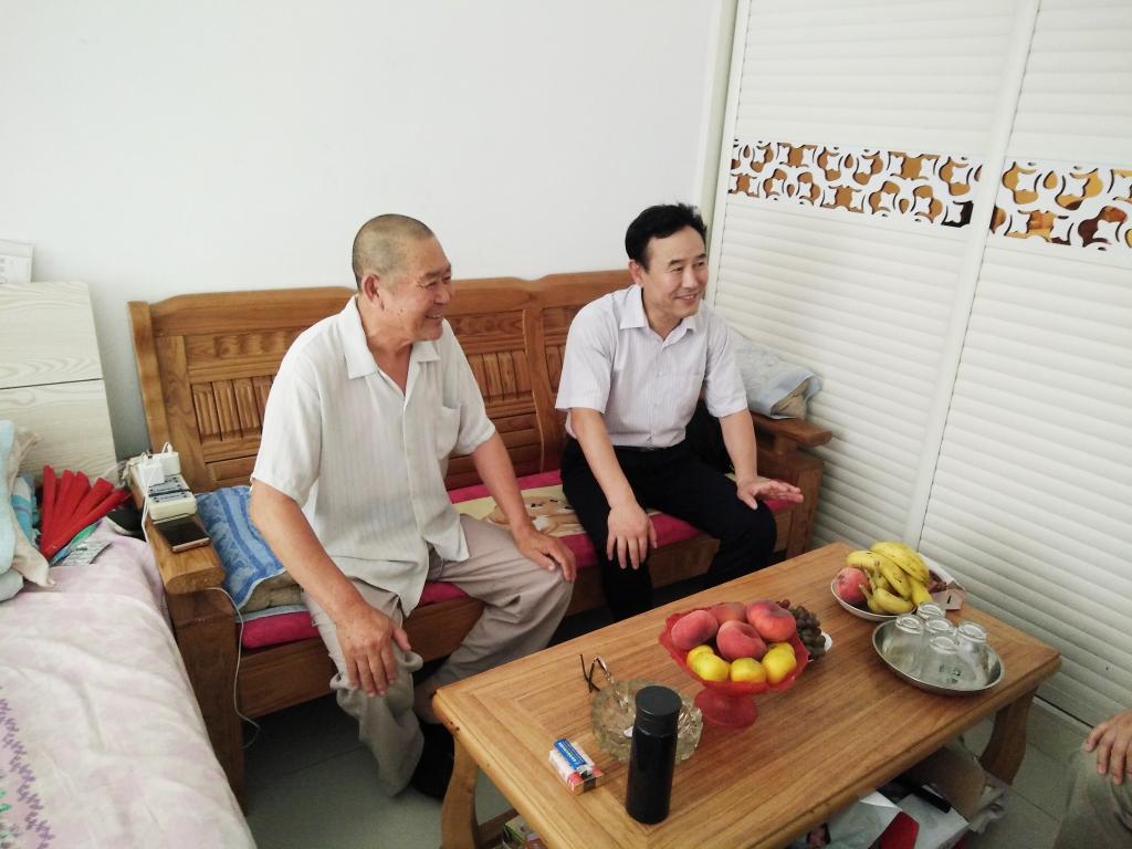 副校长张福喜(左一)慰问退休军转干部胡志杰(中)