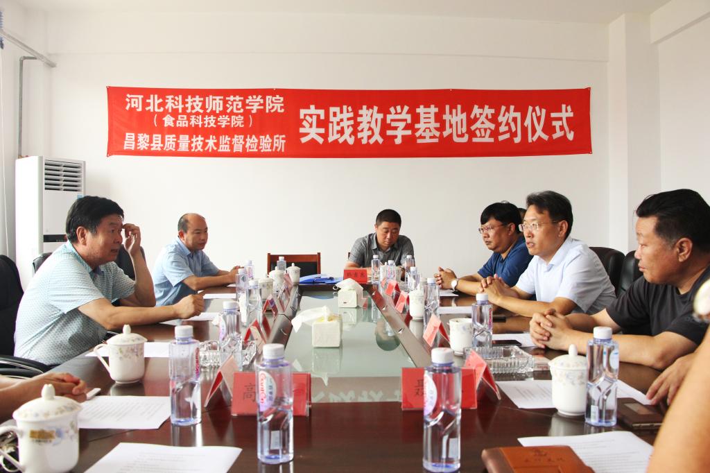 8月12日上午,半岛online(中国)食品科技学院与昌黎县质量技术监督检验所签署了校外教学实践基地合作协议并挂牌,半岛网页版界面党委常委李佩国及昌黎县副县长龙立新应邀参加签约仪式并为基地揭牌。