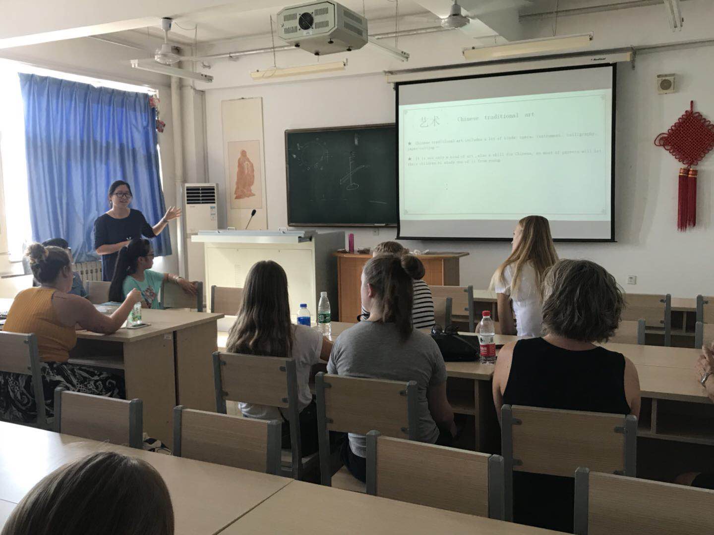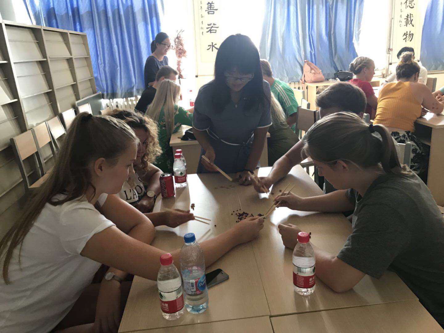 访问期间,丹麦师生与文法学院学生同上“中国文化”课和汉语课,并学习了“中国结”编制和刻纸技法;丹麦师生走进艺术学院,受到了学院领导和老师的热烈欢迎,在艺术学院,丹麦师生参与扎染制作、学画中国画,欣赏了艺术学院合唱团和民族舞蹈队的表演,并感受二胡、古筝等传统民族乐器技艺。丹麦师生还在昌黎参观了半岛online(中国)葡萄酒专业实习基地华夏酒厂,在山海关参观了长城博物馆,真切感受了秦皇岛的历史积淀和中国悠久的历史文化。