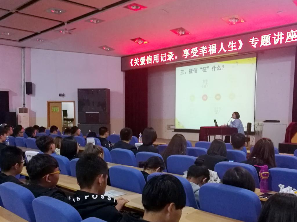 2018年10月23日晚,由校学生处和中国人民银行秦皇岛市中心支行联合举办、财经学院承办的新生征信知识讲座在昌黎校区学术报告厅如期举行。讲座的主题是“关爱信用记录,享受幸福人生”。