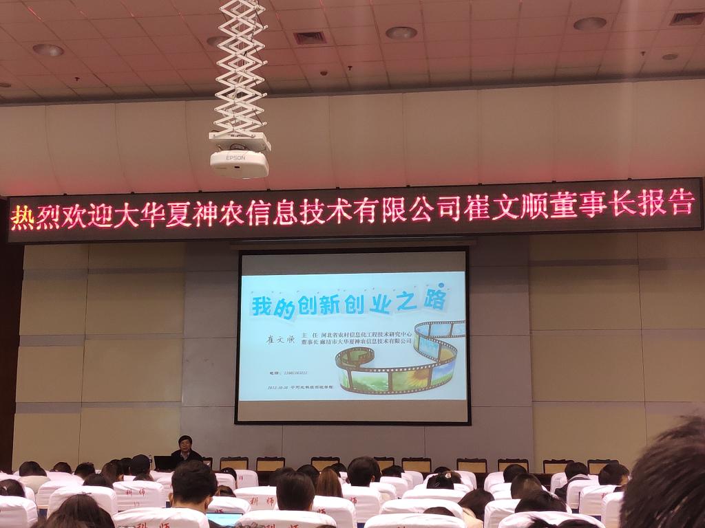 2018年10月30日,数学与信息科技学院邀请河北省农村信息化工程技术研究中心主任、华夏神农公司董事长崔文顺教授在秦皇岛校区学术报告厅作题为“我的创新创业之路”的报告。数信学院网络工程专业2016、2017级学生,计算机科学与技术专业2016、2017级学生,物联网工程专业2016级学生聆听了报告。