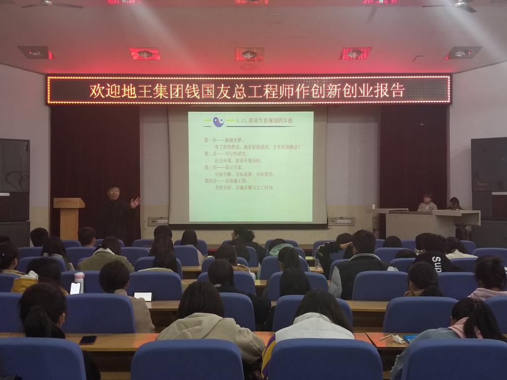 为了增强大学生的职业规划意识,开阔创新思维,培养自主创业意识,2018年10月30日8点,食品科技学院邀请地王集团钱国友总工程师在学术报告厅作创新创业报告。学院2017、2018级学生参加了此次活动。
