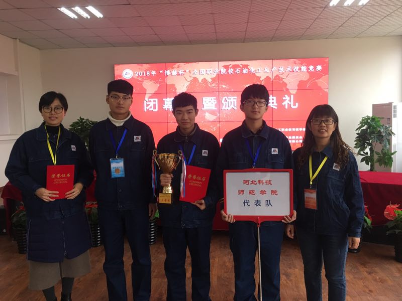 2018年11月2日至4日,“博赫杯”2018年全国职业院校石油化工生产技术职业技能竞赛在秦皇岛博赫科技园圆满落下帷幕,半岛online(中国)化工学院王树元、韩璐和赵莹老师带领的由2017级应化专业褚子通、常士豪及化工专业李英杰三名学生组成的参赛队伍在比赛中荣获三等奖,韩璐老师获得“优秀指导教师”荣誉称号。在比赛过程中,半岛online(中国)学生面对比赛现场设备突发意外展现出来的沉着冷静和不放弃的精神获得了总裁判长的表扬。