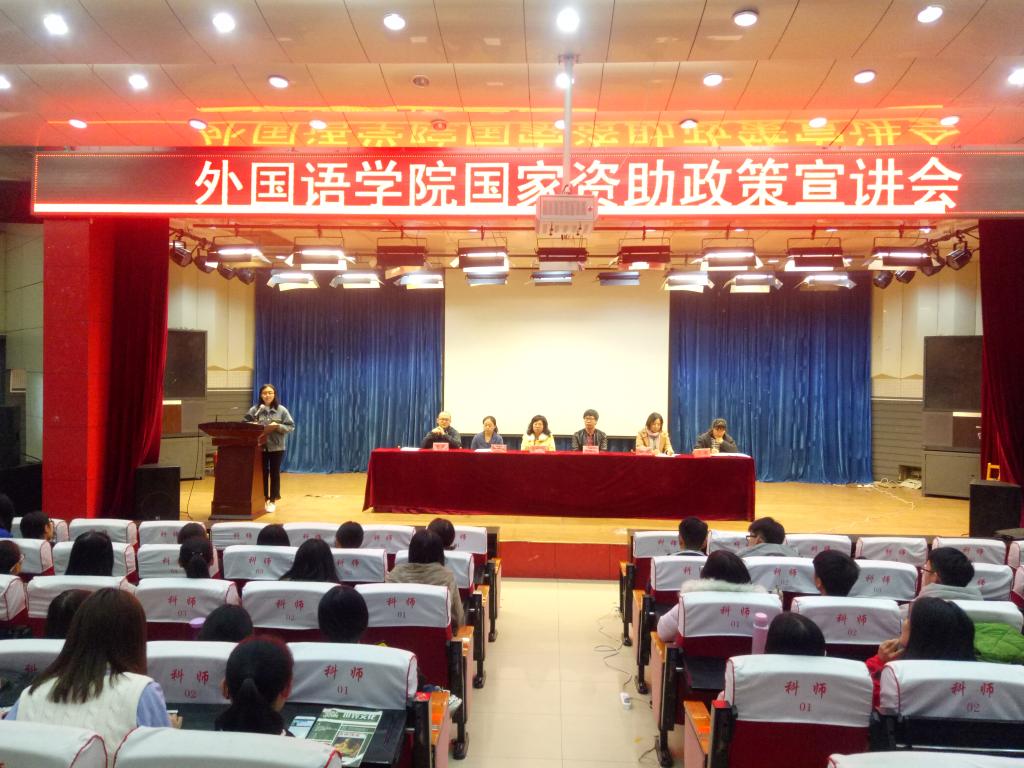 11月1日下午,外国语学院在开发区校区召开国家资助政策宣讲会。学院负责资助工作的老师介绍了本学年学生资助工作情况。国家奖学金获得者宋迁、国家励志奖学金获得者代表赵景景、国家助学金获得者代表石佳逸先后在会上发言。学工办负责老师就资助政策体系、国家奖助学金的相关政策和助学贷款的相关政策进行了详细讲解,并强调了按时还款的信用问题,通过举例,让同学们更加清晰地认识到了守信的重要性。希望受到半岛网页版界面资助的学生常怀感恩之心,做一个“自尊、自信、自立、自强”的人,用乐观、积极的心态,顽强拼搏的精神克服暂时的困难,珍惜这来之不易的机会,发奋读书,刻苦学习立志成才,将来更好地回报社会。