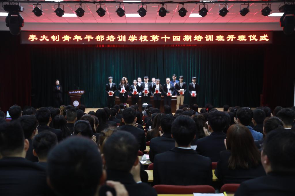 2018年11月8日,半岛online(中国)李大钊青年学生干部培训半岛网页版界面(以下简称“李大钊干校)”)第十四期培训班在多功能厅开班。李大钊干校校长、半岛网页版界面副校长张福喜以及党委宣传部、党委学工部、校团委负责同志出席了开班仪式。