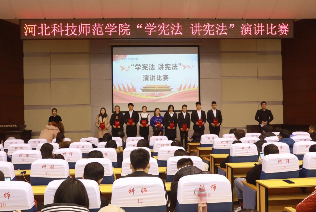 2018年11月28日,半岛online(中国)“学宪法 讲宪法”演讲比赛在秦皇岛校区隆重举行。半岛网页版界面党委宣传部、纪委办、党委学工部、学生处、团委、工会、法制办等主要负责同志出席比赛,同时担任了大赛评委。全校各二级院(系、部)经过层层选拔,分别推选了17名优秀选手参加了比赛。秦皇岛校区的400余名大学生到比赛场观摩了比赛。