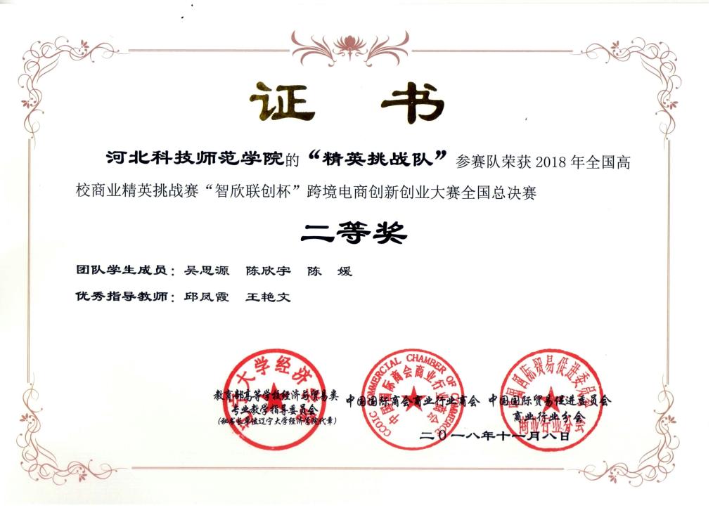 近日,2018年全国高校商业精英挑战赛“智欣联创杯”跨境电商创新创业大赛全国总决赛圆满落幕。来自全国本专科院校的160个团队参加了总决赛角逐。半岛online(中国)财经学院两个参赛团队均获得二等奖。