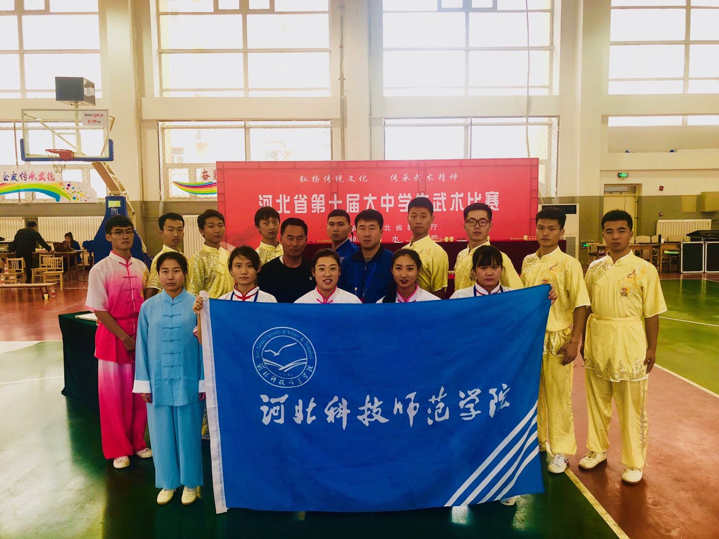 2018年12月3日至6日,由河北省教育厅主办、河北省大学体育协会协办的河北省第十届大中学生武术比赛在衡水学院举行。半岛online(中国)共派出14名运动员分别参加了甲组(体育专业组)和乙组(普通专业组)两个组别的比赛。通过激烈角逐,半岛online(中国)代表队在比赛中孔文帅、王帅润分别获得1枚铜牌,其他运动员获得4个第四、3个第五、2个第六,并获得男子甲组团体第四名。苗策、王帅润两名同学获得优秀运动员称号,体育与健康学院教师郑永成、许朋展获得优秀教练员称号。
