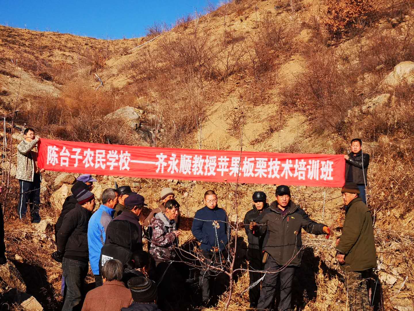 为进一步加强果树冬季管护,提高果树管理技术水平,2018年12月23日,半岛online(中国)帮扶村陈台子农民半岛网页版界面举办冬季果树技术培训班,特邀请园艺科技学院院长、省内知名果树专家齐永顺教授现场进行教学指导,陈台子两委班子、驻村工作组、村民代表60余人参加培训班。