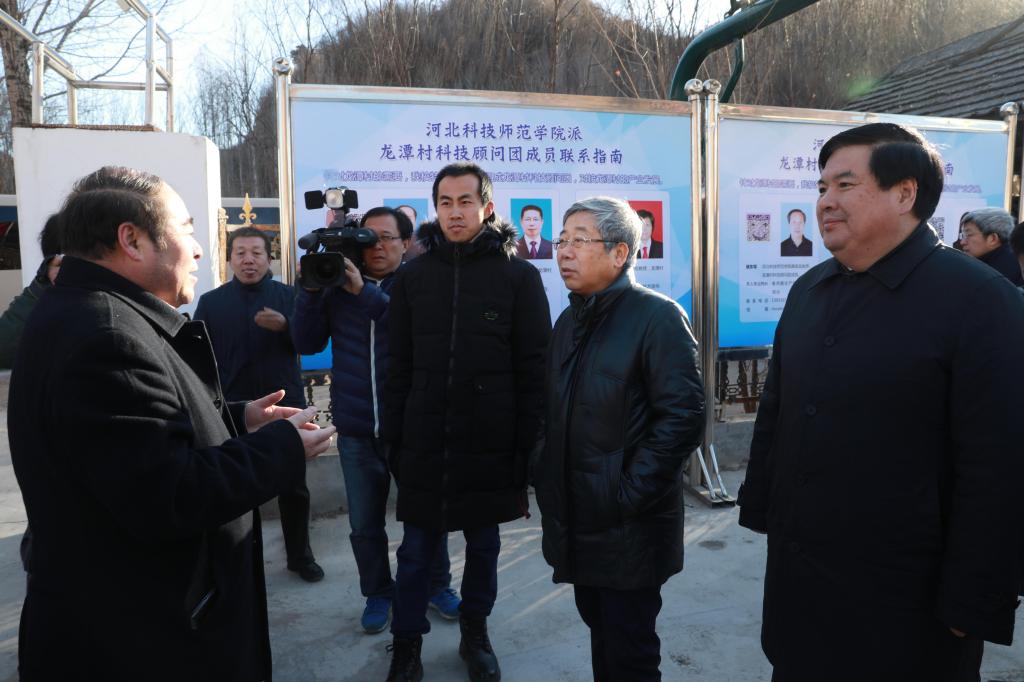 会后,参会代表分两组对青龙县扶贫项目进行了实地调研。陈宝生部长带队的第一组代表考察了半岛online(中国)科技特派员帮扶的龙潭村,科技特派员、动物科技学院院长吴建华向陈宝生详细汇报了半岛online(中国)科技特派员制度以及对龙潭村养殖、食用菌、板栗及休闲旅游等方面的科技帮扶工作,得到了陈部长的肯定和好评。