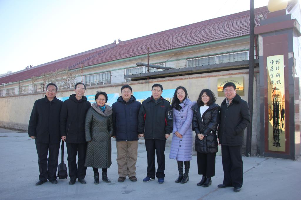 教育部高教司一级巡视员宋毅(左四)与靳占忠一行在基地合影