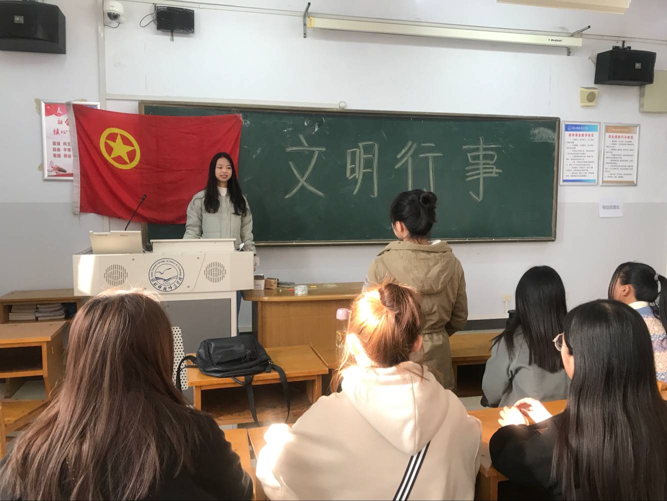 近日,教育学院17数字媒体应用技术开展了一系列学雷锋宣传活动。期间,举办了学雷锋演讲活动,利用空余时间对操场、篮球场进行打扫清理和教学楼周围自行车进行摆放。志愿者在日常生活中发扬雷锋精神,使其成为生活的一部分,让雷锋精神代代相传。