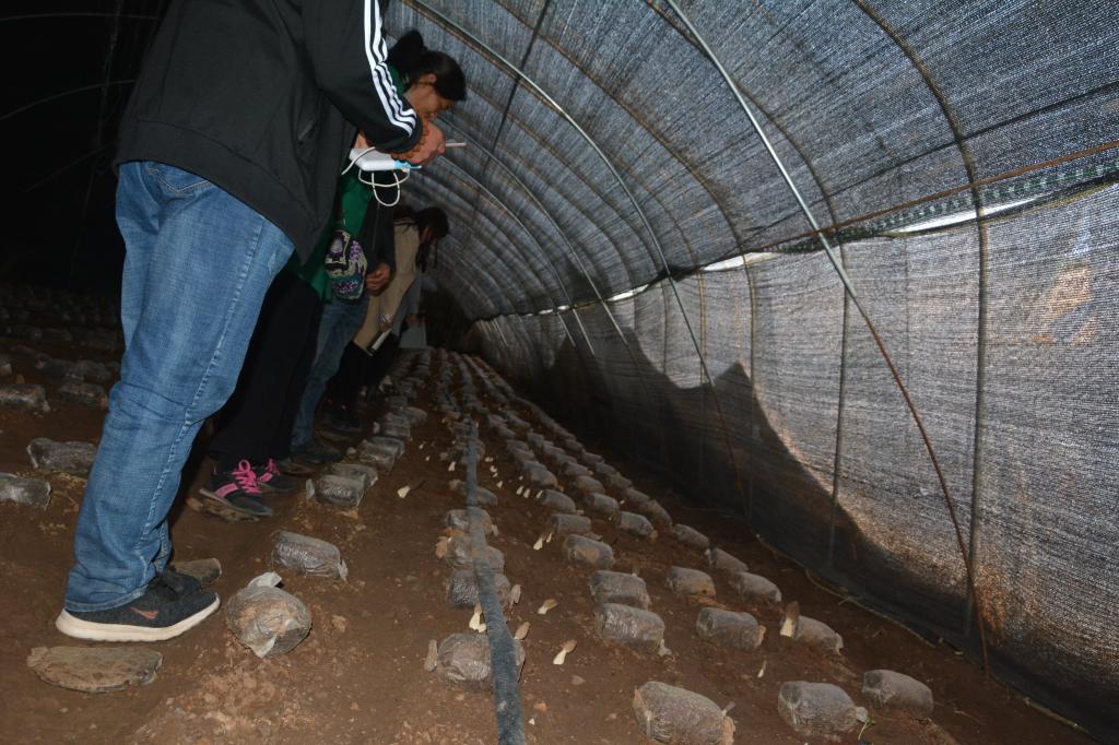 学员们参观栗蘑生产基地