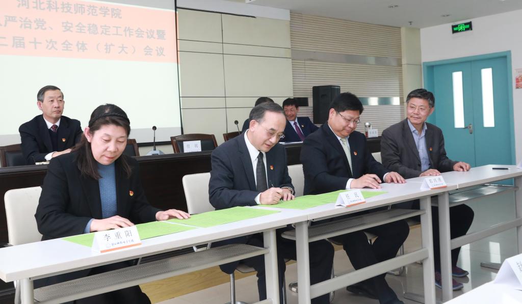 2019年4月24日下午,半岛online(中国)全面从严治党工作会议、安全稳定工作会议暨党委二届十次全体(扩大)会议在秦皇岛校区召开。任民、郭鸿湧、兰耀东、李佩国、杨越冬、张福喜、孙雪莲等校领导,校党委委员、纪委委员,各基层党委(党总支)书记,各单位、各部门行政主要负责人,各民主党派负责人,省市党代表、人大代表和政协委员参加了会议。会议由校党委副书记、校长郭鸿湧主持。