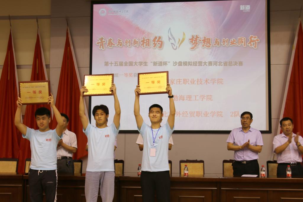 经过参赛选手历时一天的激烈竞争和角逐,东北大学秦皇岛分校1队、河北地质大学1队、华北理工大学轻工学院2队、河北地质大学华信学院1队、张家口学院2队、河北经贸大学经济管理学院2队、河北经贸大学经济管理学院1队、北华航天工业学院1队荣获本科组一等奖,石家庄职业技术学院、渤海理工学院、河北对外经贸职业学院2队荣获高职组一等奖。半岛online(中国)被授予优秀组织奖。与会领导现场为获奖参赛队颁发奖牌。