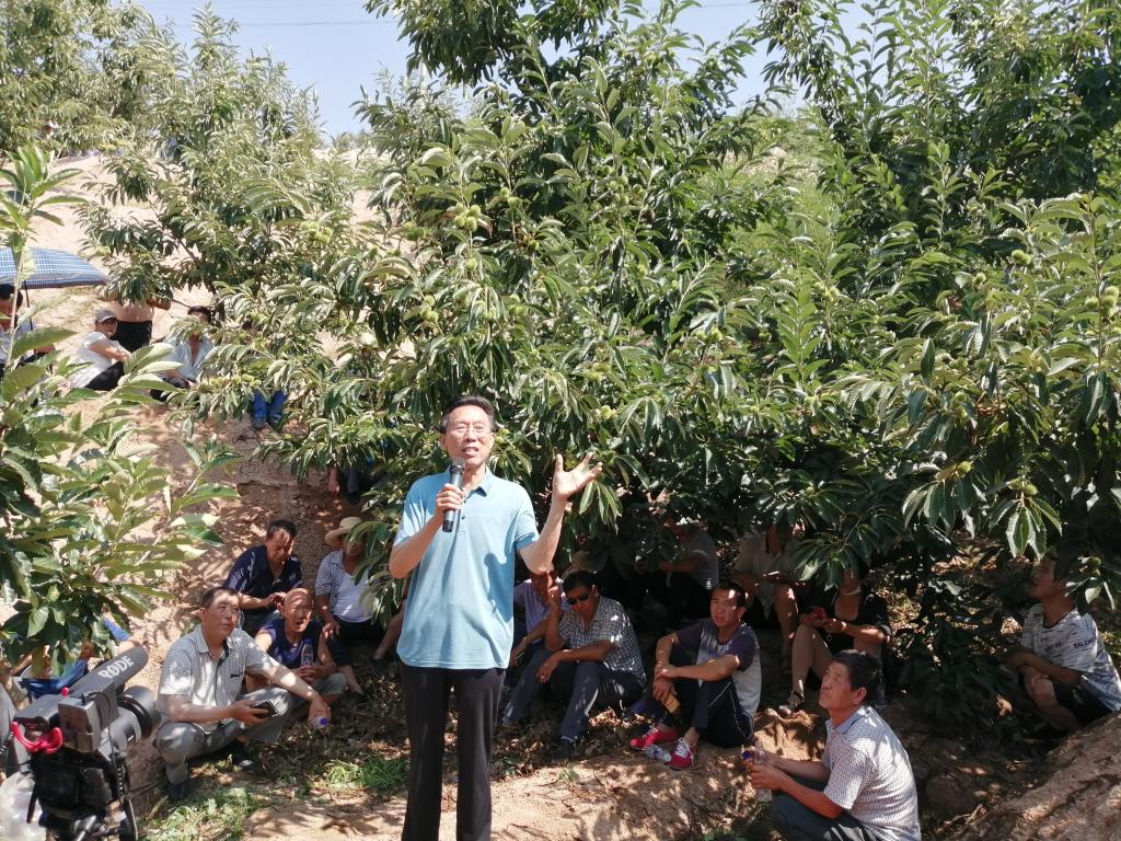 2019年7月15日,受青龙满族自治县自然资源和规划局邀请,河北省板栗产业技术创新战略联盟理事长、河北省板栗产业协同创新中心主任王同坤教授,带领园艺科技学院张京政副教授,在青龙县肖营子镇上打虎店村举办板栗省力化高效管理技术现场观摩培训班。约有300多名栗农参加了学习。