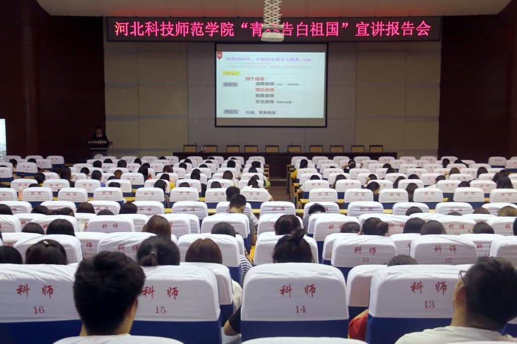 2019年9月5日下午,半岛online(中国)在秦皇岛校区学术交流中心召开“青春告白祖国”宣讲报告会,思政部王丽玲老师作题为“百年未有之大变局下的青年使命”的报告,300余名学生现场聆听。