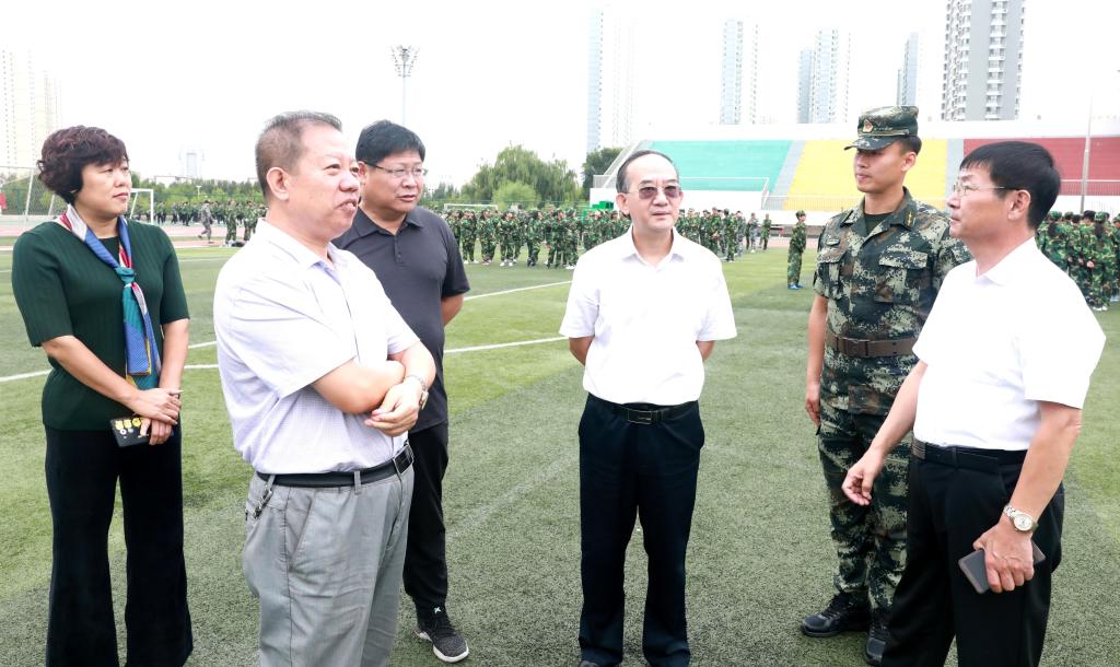 2019年9月12日上午,校党委书记任民,党委副书记、校长郭鸿湧,党委常委、副校长张福喜到军训现场指导工作,并看望承训教官和2019级新同学。